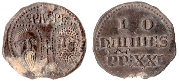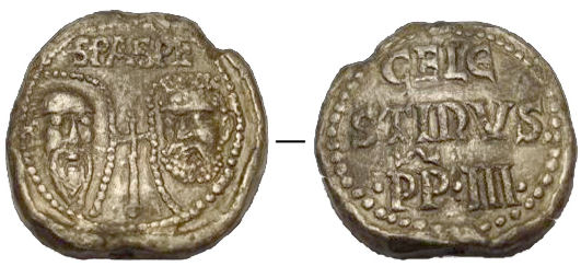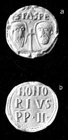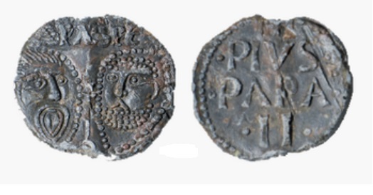 de pausnaam zien ( Hadrianus ) en de letters PaPa. Later afgekort naar PP ( Papa