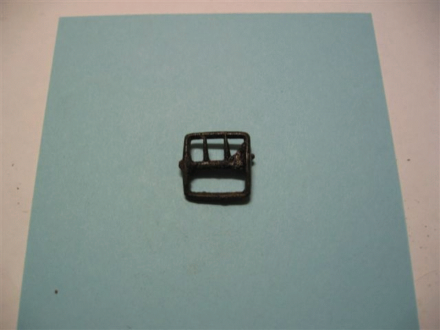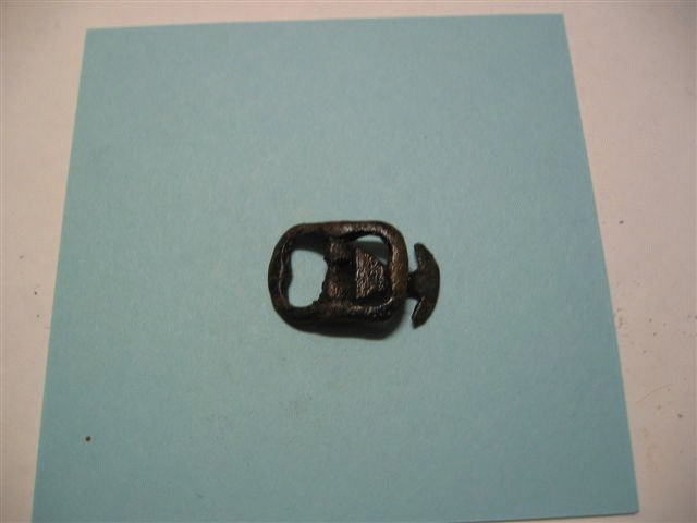 | Gespje compleet met plaat 1660-1720 vondst John B | Klein gespje met 2 tandjes 1720-1790 vondst John B | Franse rekenpenning vondst Jeroen |