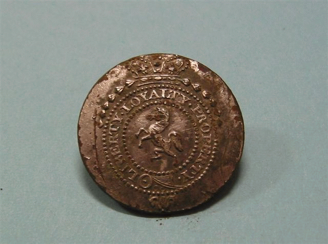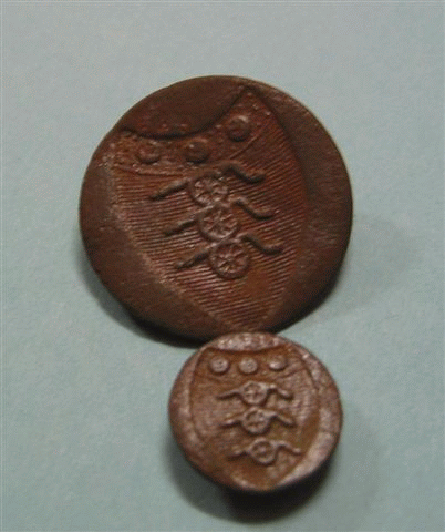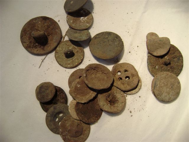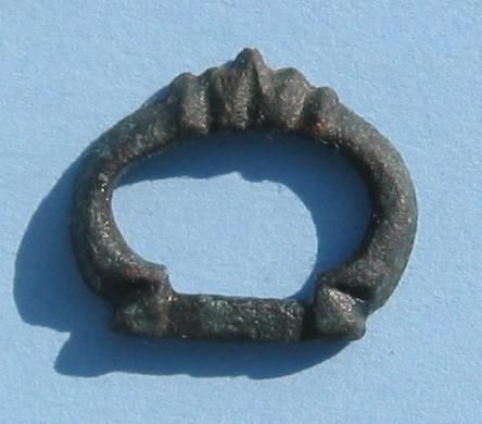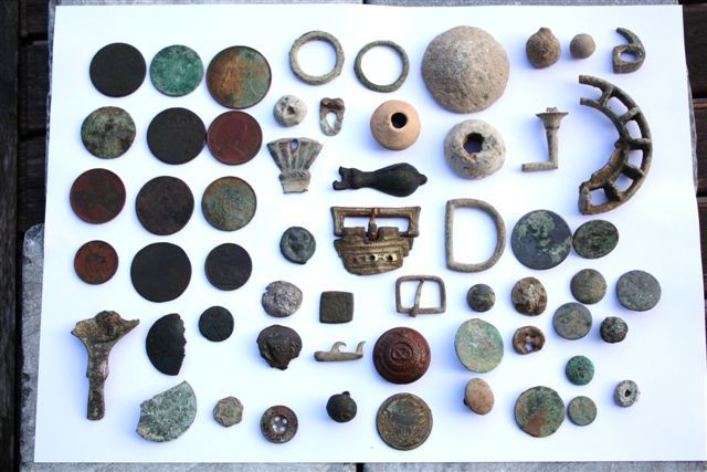 | Gesp dubbel ovaal 16e eeuw vondst John K | Officiersknoop 1780-1820 vondst John B | Overzicht Jeroen |