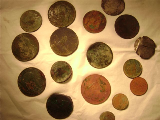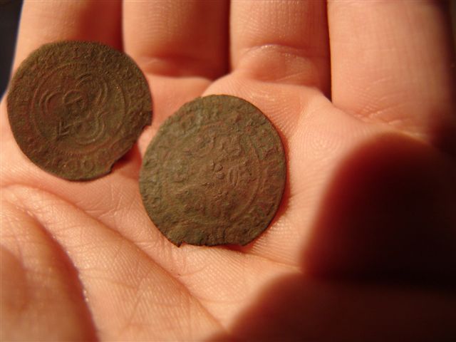 | Diverse munten Jeroen | Geblazen knoopje 18e eeuw vondst John B | Diverse munten John K |