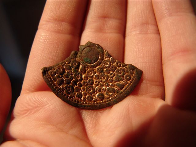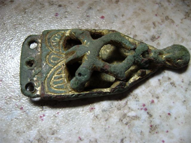 | Romeinse riemhanger vondst John K | Merovingische riemtong verguld met 3 slangen vondst John B | Pelgrimsampul 15e eeuw vondst john K |