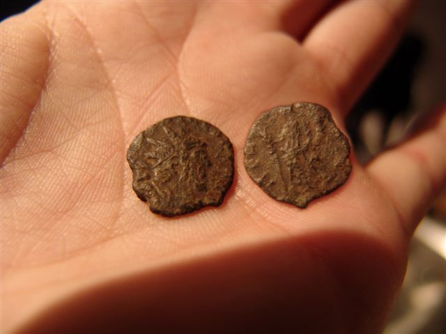 | Romeinse munt keizer Tetricus I 270-273 vondst Jeroen | Sixpence James II (1685-1688) vondst John K | Hammered copper rose farthing 1650 vondst John B |